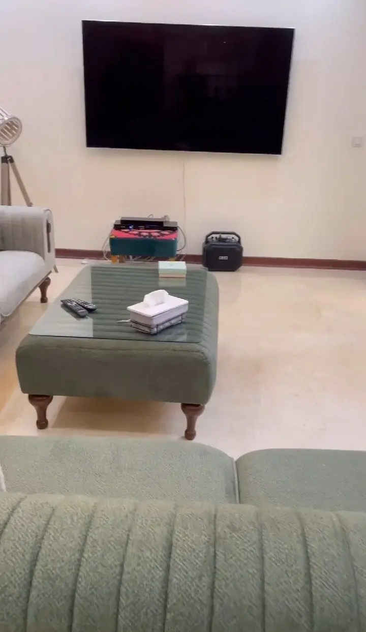 - تلویزیون بزرگ و مدرن: قرار دادن فرش قرمز در کنار تجهیزات الکترونیکی پیشرفته مانند تلویزیون، ترکیبی جذاب از سنت و فناوری ایجاد میکند و محیط اتاق را از احساس سردی و بیروحی دور نگه میدارد.
