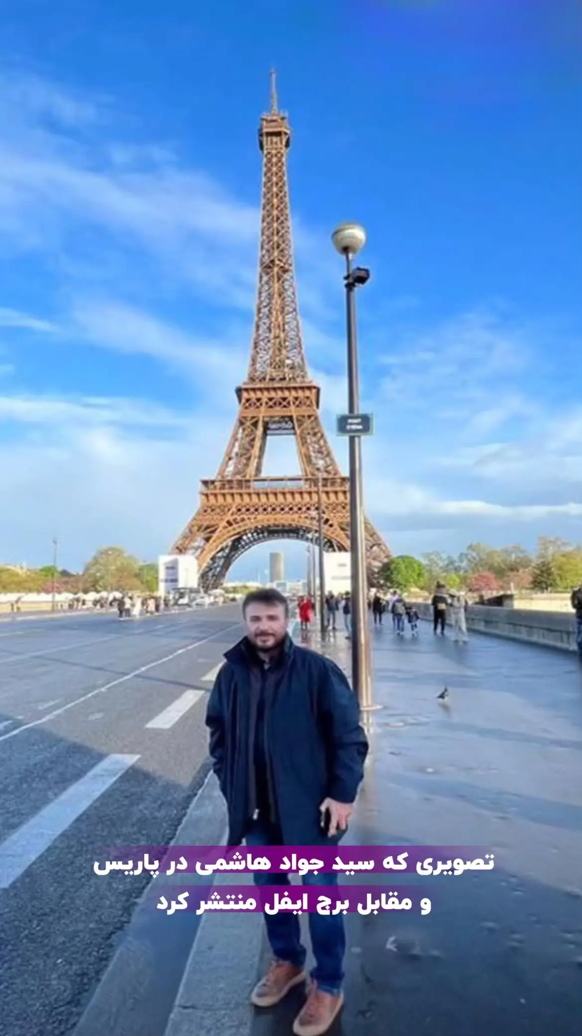 سید جواد هاشمیپور مقابل برج ایفل، نماد فرهنگ ایران در پاریس