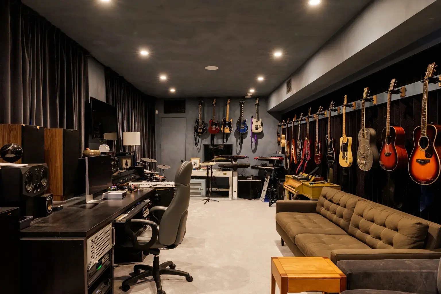 در اطراف این مجموعه، باربیکیو، سالن آتشدان، دو گاراژ و یک استودیوی مستقل با فضای ضبط قرار گرفته است که آن را به طور کامل تکمیل میکند.