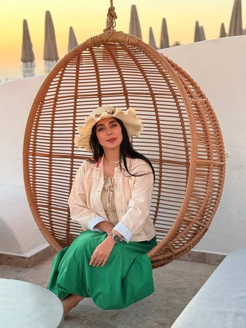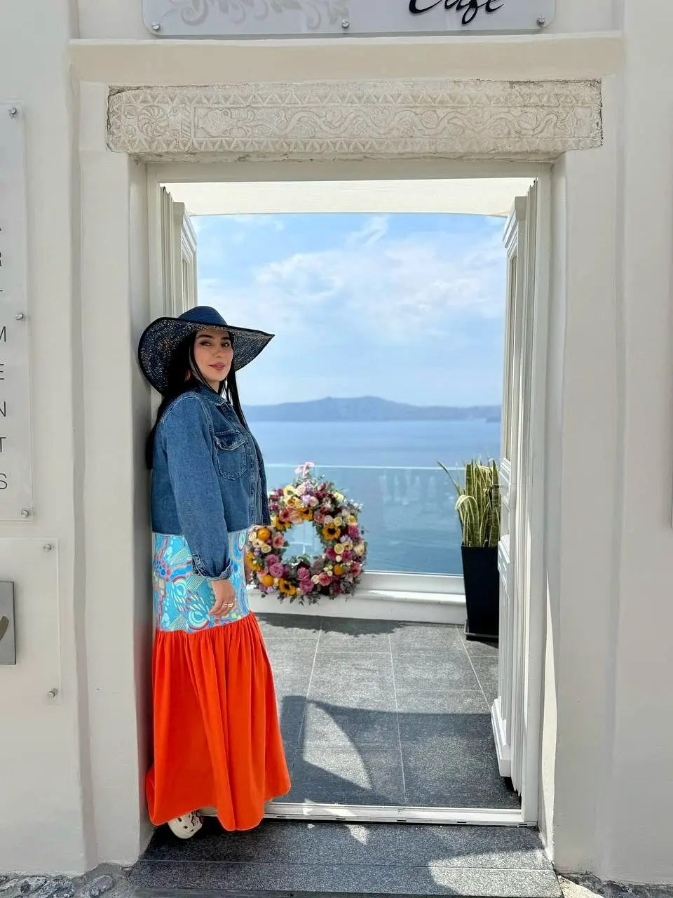 در یک کوچه تنگ و سنگفرش، میان دیوارهای نارنجی و پنجرههای آبی، یک کافهی کوچک و دنج مخفی شده است. در این فضای شاعرانه، شیدا یوسفی روی صندلی تابی حصیری نشسته و لحظاتی را در آرامش و لذت سپری میکند.