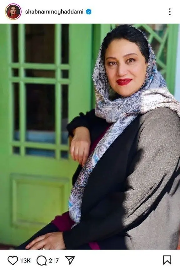 شبنم مقدمی در کنار درب سبز، نماد آرامش و استایل خاص