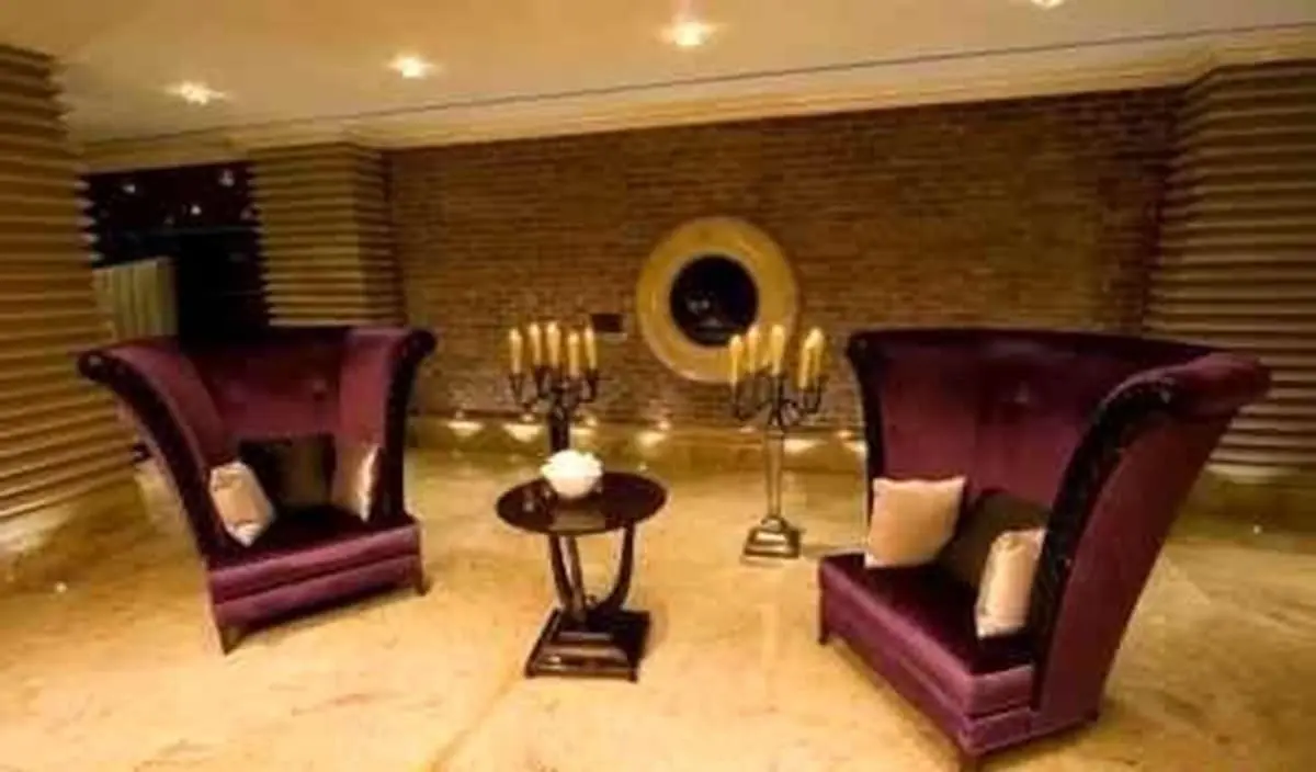 در طراحی داخلی منازل بزرگ و مجلل، باید به جزئیات هر قسمت توجه ویژهای داشت. تصویر نشاندهنده دو مبل جداگانه است که در گوشهای از پذیرایی قرار گرفتهاند و کنار آنها شمعدانهای بزرگ و زیبایی قرار گرفته است. رنگ بنفش یکی از رنگهای پرکاربرد و نماد لوکس بودن در دکوراسیون کلاسیک خانههای مجلل است.