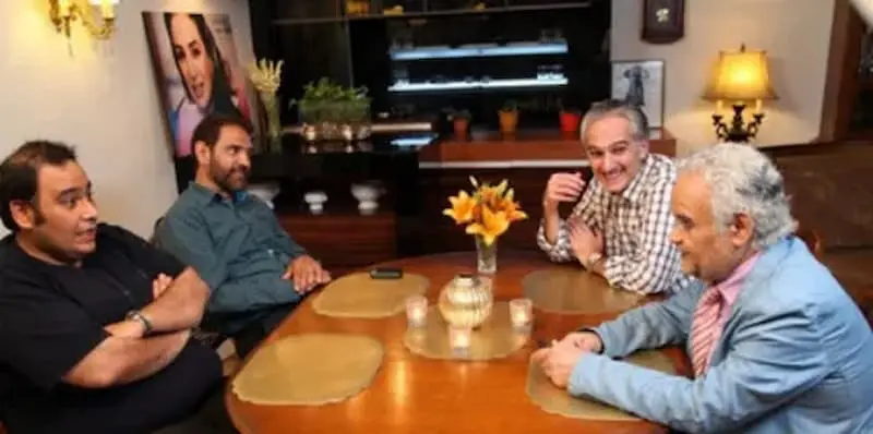 خانه رضا داوودنژاد و عسل بدیعی دکوری ساده اما شیک دارد. این فضا با تصاویری از هنرمندان سینما روی دیوارها شخصیسازی شده است که نشاندهنده علایق و روحیات مالکین است. رنگ کرم مبلمان، استفاده از متریال چوب و پردههای نسکافهای مخمل و حریر، فضایی گرم و دلنشین را در نشیمن و اتاق تلویزیون ایجاد کرده است. کاناپه راحتی مدرن در کنار مبلهای تکنفره نئوکلاسیک، فضایی جذاب و دلپذیر ساخته است. این مبلمان همراه با آباژور رومیزی کلاسیک، سبک نئوکلاسیک خانه را تکمیل میکند.