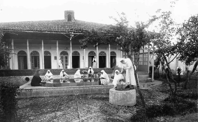 عمصتالدوله، دختر مشهور ناصرالدینشاه قاجار، صاحب خانهای زیبا و با معماری سنتی در گیلان بوده است. این خانه، با عناصر معماری اصیل، در این تصویر تاریخی به تصویر کشیده شده است.