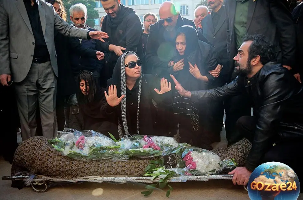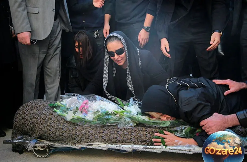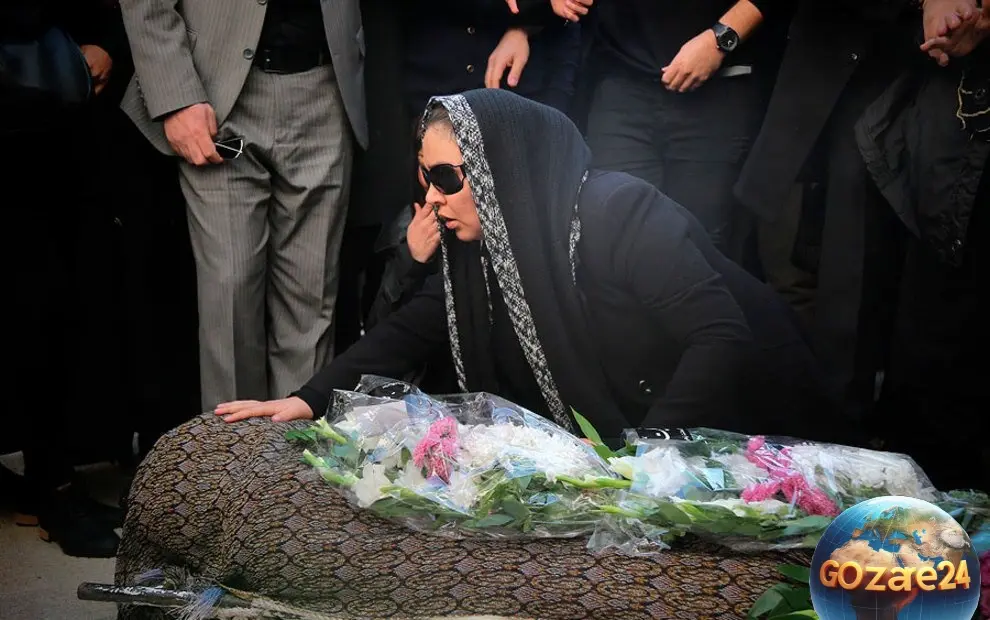 تصاویر غمانگیز وداع زیبا بروفه با همسرش پیام صابری در روز خاکسپاری، لحظات تلخ و بیتابی مادر هنر ایران را نشان میدهد.