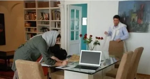 خانه لیلا حاتمی دارای طراحی مدرن و ساده است. در قسمت نشیمن، مبلمان سفید و سادهای قرار دارد که به خوبی با سبک مینیمال و مدرن همخوانی دارد. کفپوش قهوهای رنگ، فضایی گرم و متنوع ایجاد کرده است. در بخش دیگری از خانه، میز نهارخوری با سطح شیشهای قرار گرفته که اطراف آن صندلیهای قهوهای و ساده چیده شده است. یک گلدان با گلهای رز، جلوه زیبایی به فضا بخشیده است. یکی دیگر از عناصر دکوراسیون داخلی خانه، درهای سفید رنگ با شیشههای درون آن است که به زیبایی فضا افزوده است.