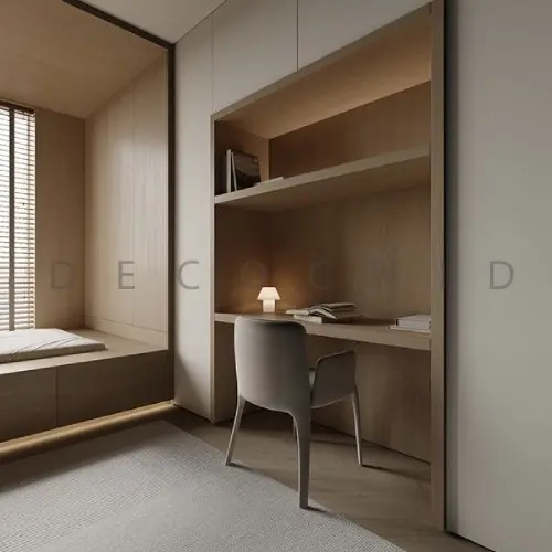 در این اتاقها از طراحی ساده و بیپیرایه استفاده میشود. فضای مرتب، کتابخانه های ساده و میزهای مطالعه کارآمد از ویژگیهای این اتاقها هستند. انتخاب رنگهای ملایم و استفاده از مبلمان ساده میتواند آرامش و تمرکز را در این اتاقها افزایش دهد.