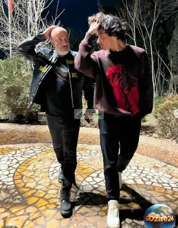 تصویر شوخی بامزه پسر امیر جعفری با سر کچل پدرش و فخر فروشی با موهای خود، لحظهای شیرین و خندهدار در خانواده هنری.