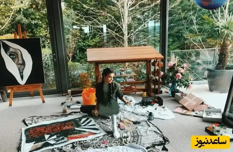 در بخش دیگری از خانه، کارگاه هنری هانده قرار دارد که پر از ابزار نقاشی، بومها و آثار نیمهتمام است. این فضا با پنجرههای بزرگ و نور طبیعی فراوان، محیطی الهامبخش برای خلق آثار هنری است. فضای نشیمن در شب با نور ملایم، میز مرکزی و حضور سگهای خانگی، حال و هوایی آرام و خانوادگی دارد که نشان میدهد خانه برای او نه تنها مکانی برای زندگی، بلکه محیطی برای خلاقیت و آرامش است.