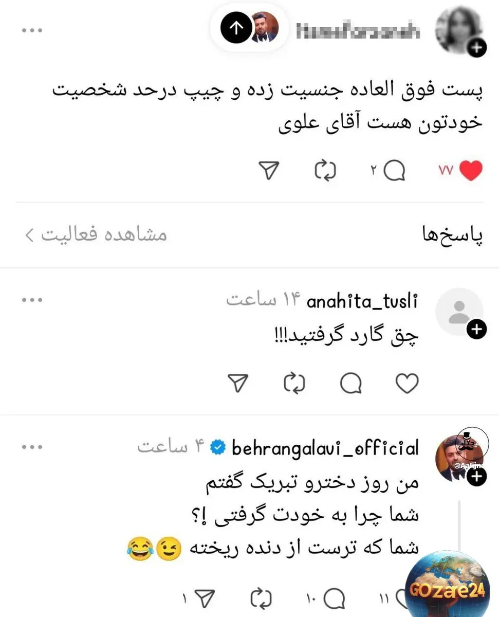 واکنش منفی کاربران به شوخی زشت بهرنگ علوی در روز دختر، با انتقاد از نامناسب بودن و بیموقع بودن پیام او در فضای مجازی.