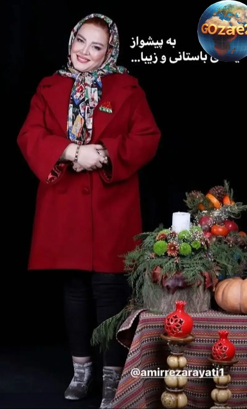 بهاره رهنما در شب یلدا با استایل قرمز و حال و هوای سنتی