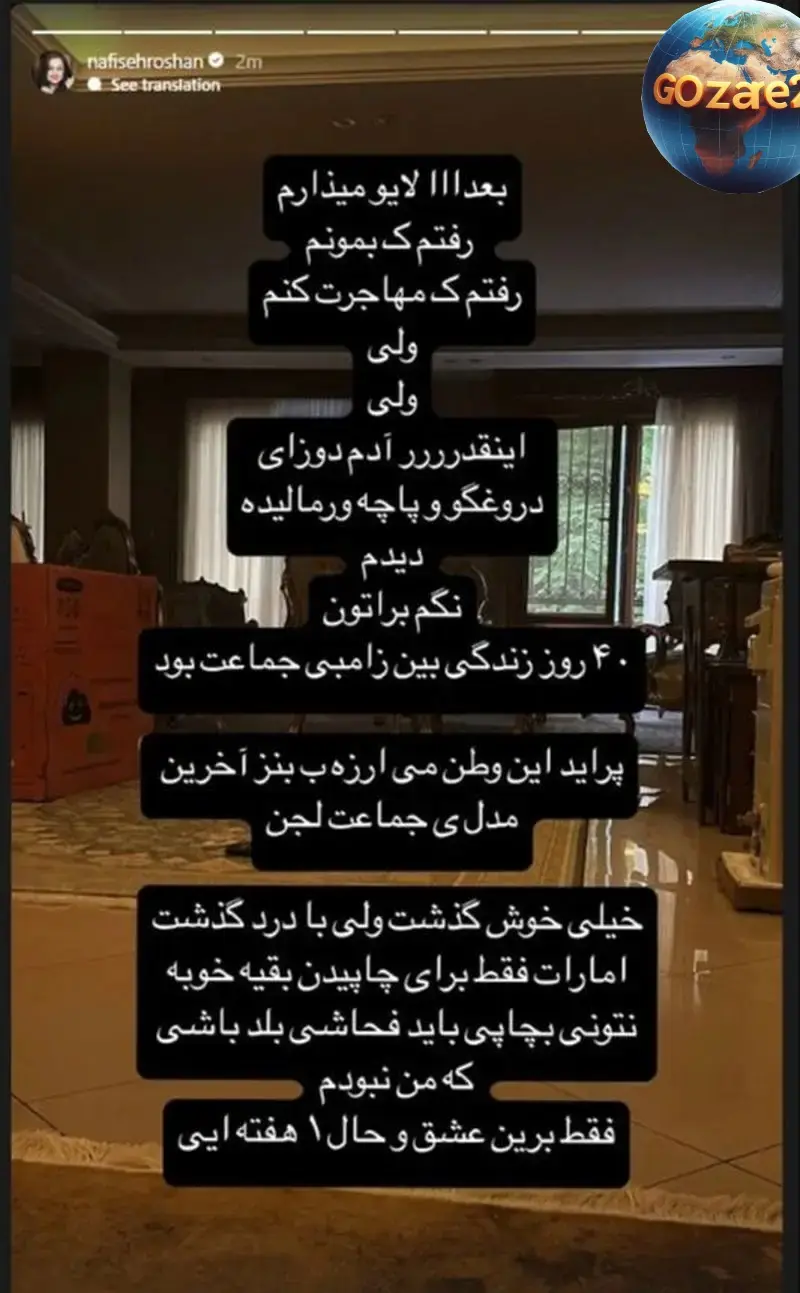 در زمستان گذشته، خبرهایی درباره مهاجرت نفیسه روشن به امارات منتشر شد. اما اخیراً او در یک استوری دلایل خود را برای تصمیمگیری نهایی و انصراف از این برنامه بیان کرد و نظراتش را با دنبالکنندگانش به اشتراک گذاشت.
