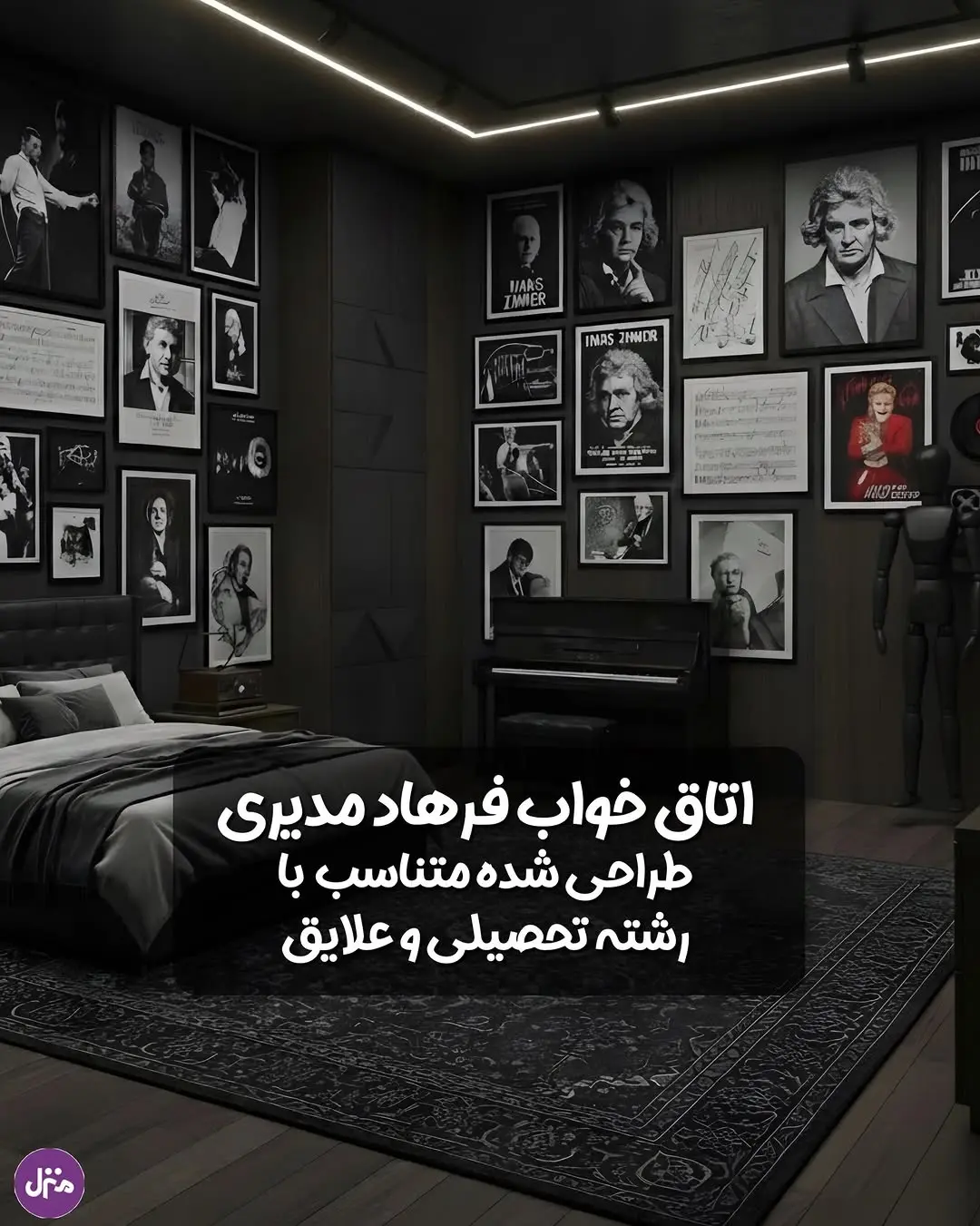 اتاق فرهاد به دلیل سن و سال، رشته تحصیلی و حرفهای بودن در زمینه آهنگسازی، نیازمند محیطی هنری و تمرکز کامل بر روی موسیقی است.