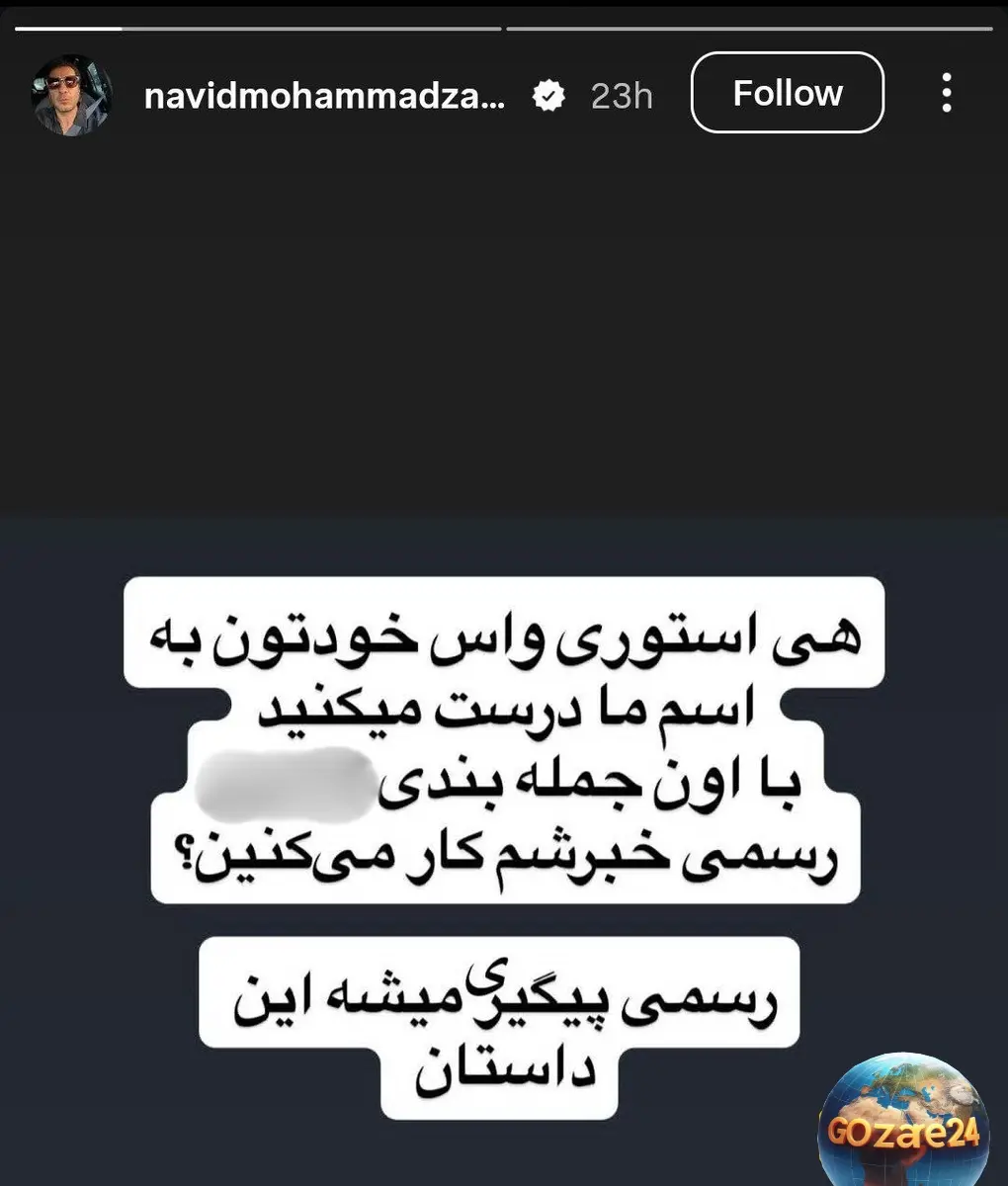 نوید محمدزاده با استوری خشم خود نسبت به شایعه توهین به ترانه علیدوستی را اعلام کرد + عکس