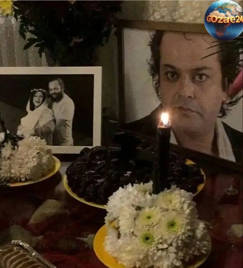 گلهای داوودی و نور ملایم شمعها، حس سوگواری و یادآوری خاطرات ماندگار را به تصویر میکشند. این ترکیب دلنشین و در عین حال غمانگیز، نشان دهنده عمق عشق و احترام خانواده به این هنرمند فقید است.