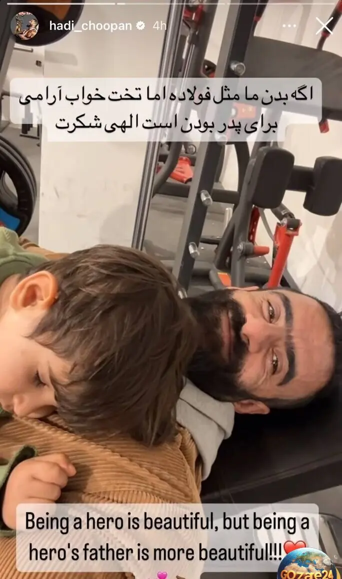 عشق پدرانه هادی چوپان به فرزندش در فضای مجازی + عکس دیدهنشده از سیکس پک باباش