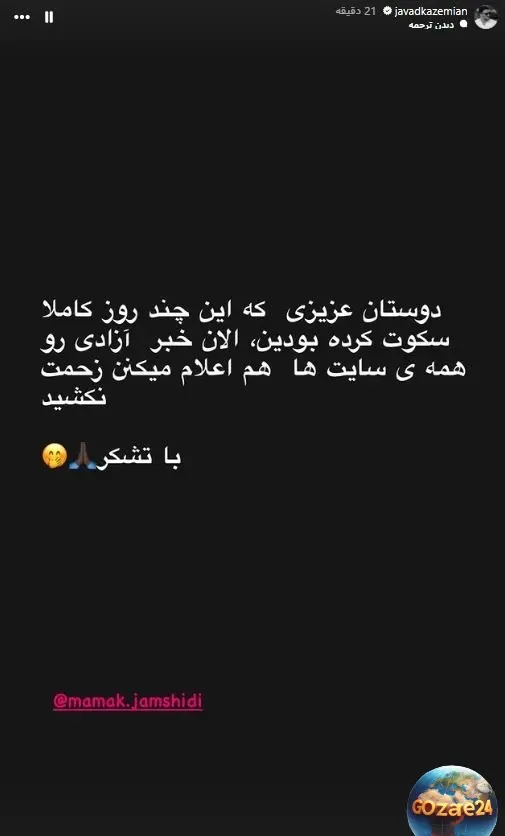 جواد کاظمیان در حمایت از دوست قدیمیاش استوری جدیدی منتشر کرد و از رفیق سابق خود حمایت کرد.