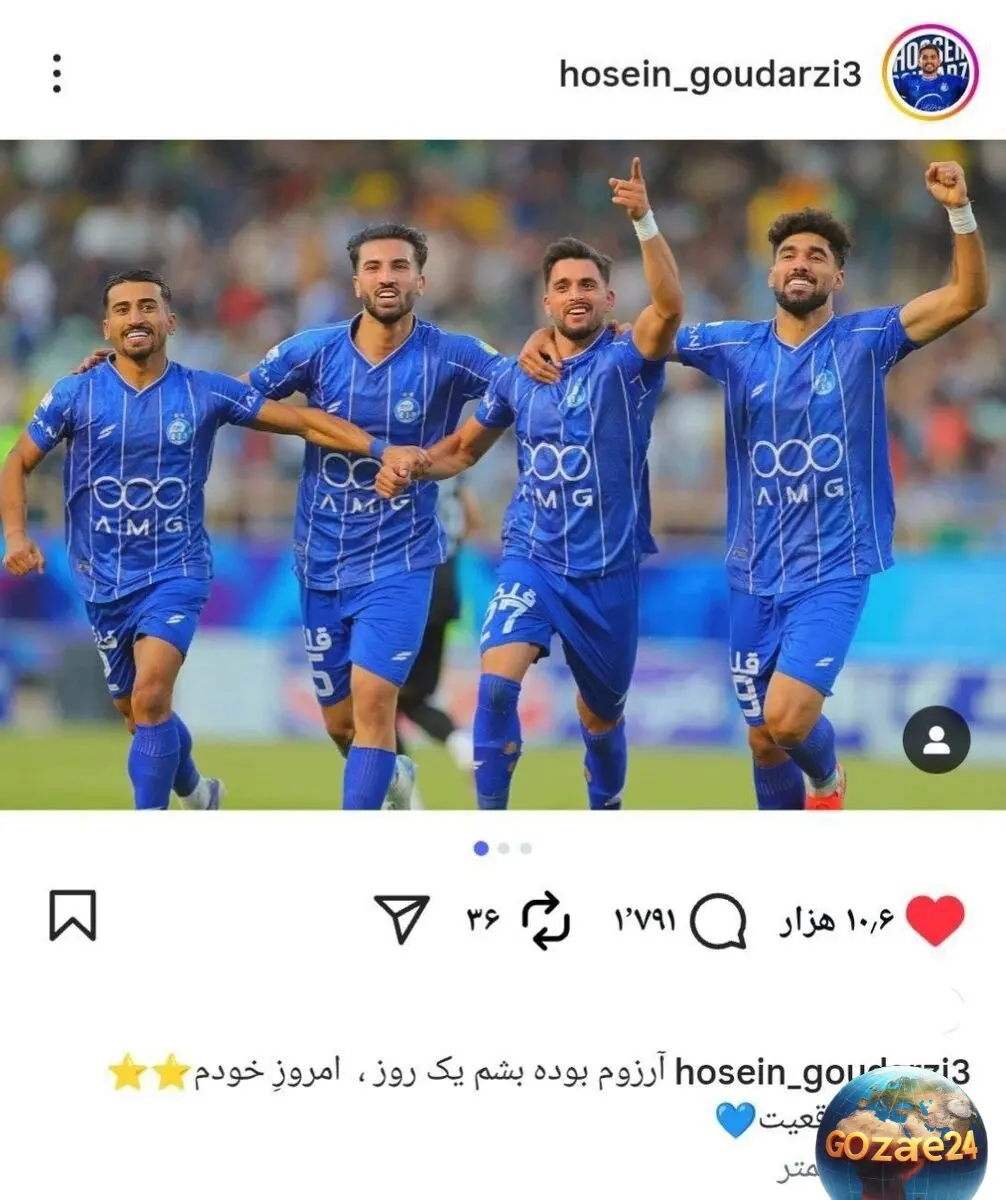 در همین راستا، گودرزی عکسی از شادی پس از گلش منتشر کرد و در کپشن آن، با سبک جملات معروف جواد خیابانی نوشت: «آرزوم بود روزی، امروز خودم. از رویا تا واقعیت.»