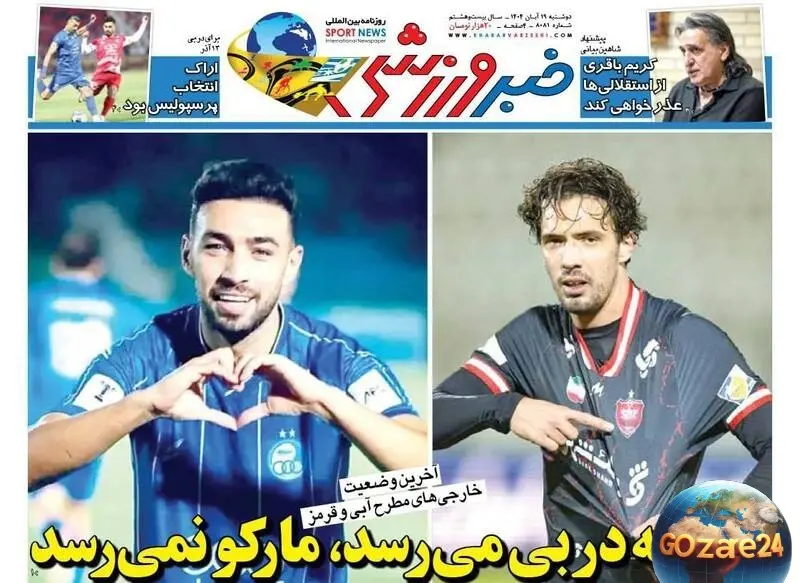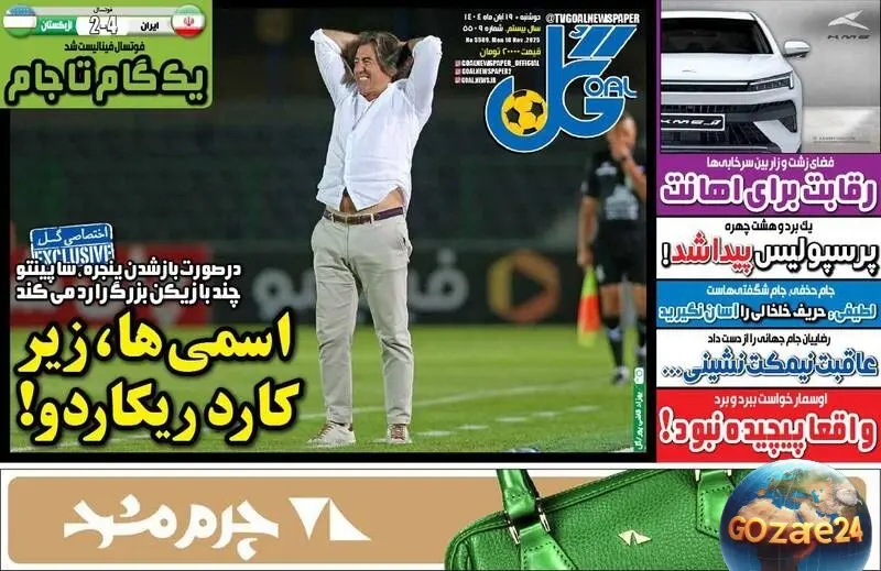 مهمترین عناوین ورزشی، سیاسی و اجتماعی دوشنبه ۱۹ آبان ۱۴۰۴ | واکنش ساپینتو به توهین به خانواده استقلال