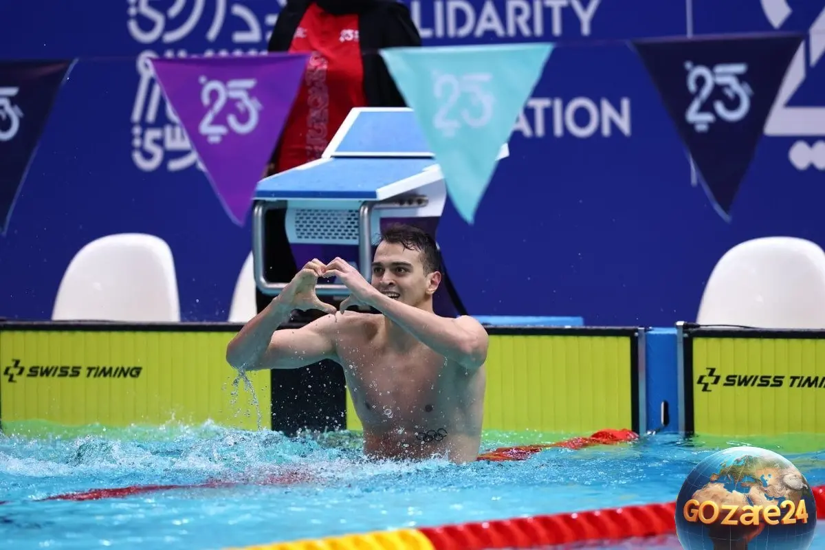 محمد قاسمی در مسابقه شنا ۲۰۰ متر آزاد به مقام اول دست یافت.
