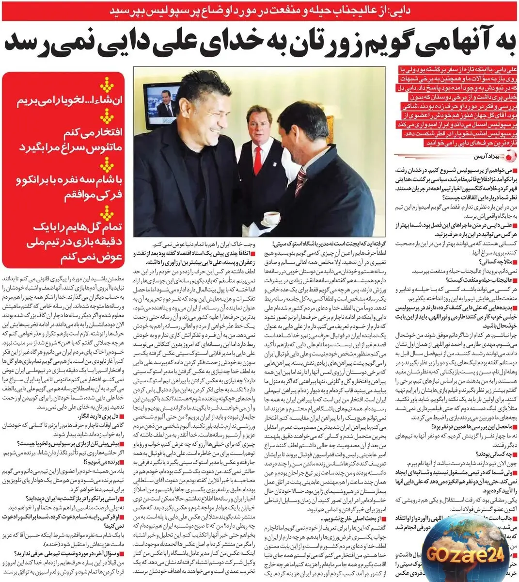 در بهار سال 94، یک روزنامه ورزشی مصاحبهای اختصاصی با علی دایی انجام داد. شهریار فوتبال در این گفتوگو که در دوم اردیبهشت همان سال منتشر شد، در مورد پرسپولیس کمی طفره رفت و گفت: من همیشه عضوی از خانواده پرسپولیس بودهام و برای موفقیت این تیم دعا میکنم، اما ترجیح میدهم درباره اتفاقات اخیر این باشگاه صحبت نکنم.