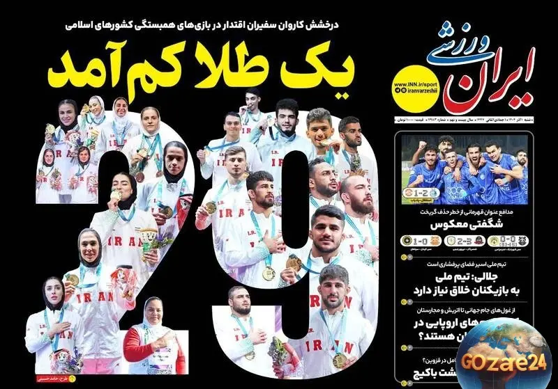 مهمترین اخبار روز ورزشی، سیاسی و اجتماعی شنبه ۱ آذر ۱۴۰۴