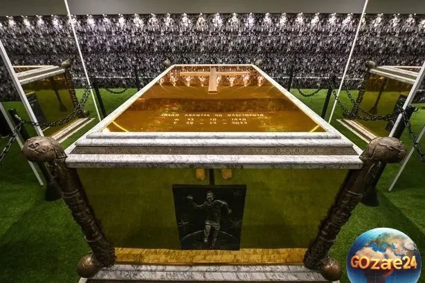 مقبره 14 طبقه پله در برزیل، نماد جاودانگی اسطوره فوتبال با تابوت طلایی و چمن مصنوعی
