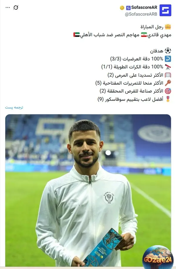 مهدی قایدی در دربی دبی ستاره شد: دو گل و عنوان مرد میدان در پیروزی النصر مقابل شباب الاهلی