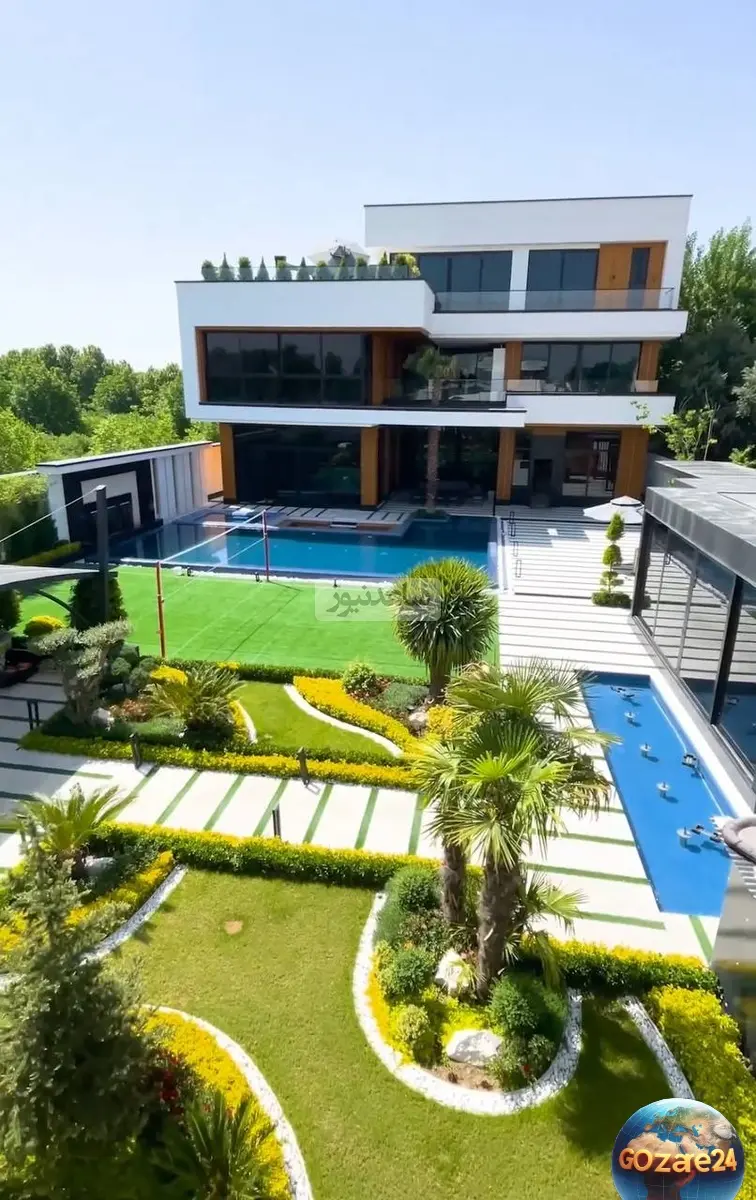 تصاویر ویلای لوکس و مدرن علیرضا بیرانوند با حیاط جنگلی و استخر بزرگ، نمونهای از زیبایی و آرامش در طبیعت ایران را نشان میدهد.