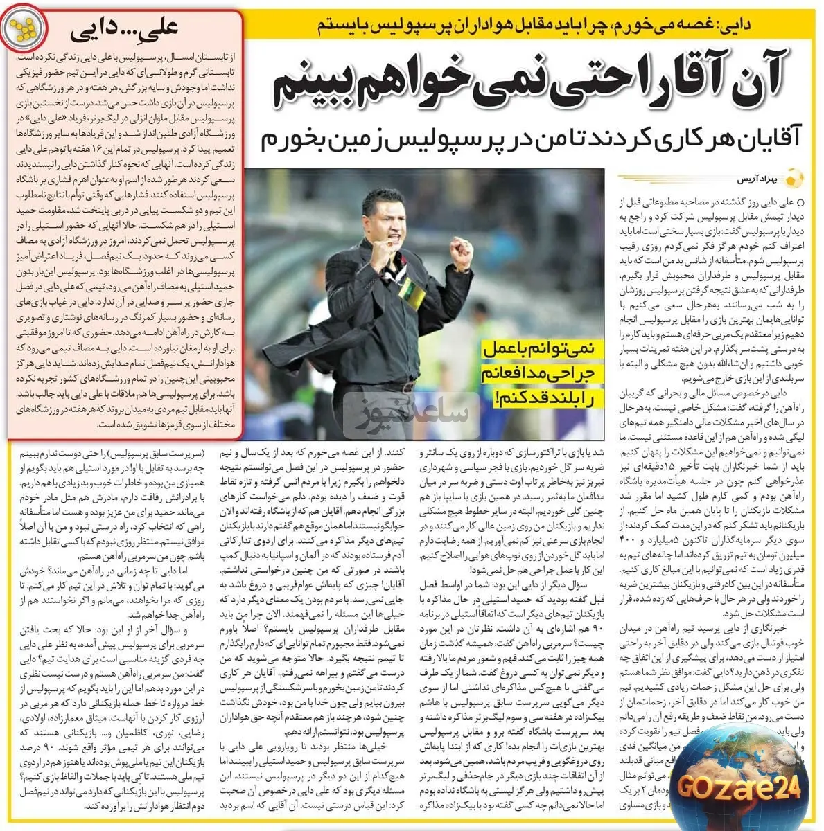 - واقعا نمیفهمم چرا در حال حاضر باید به جای سرمربی پرسپولیس، به عنوان سرمربی راهآهن مقابل هواداران این تیم قرار بگیرم. برخی افراد در پرسپولیس زمانی که من سرمربی این تیم بودم، تمام تلاش خود را کردند تا علی دایی را شکست دهند و او را زمین بزنند.