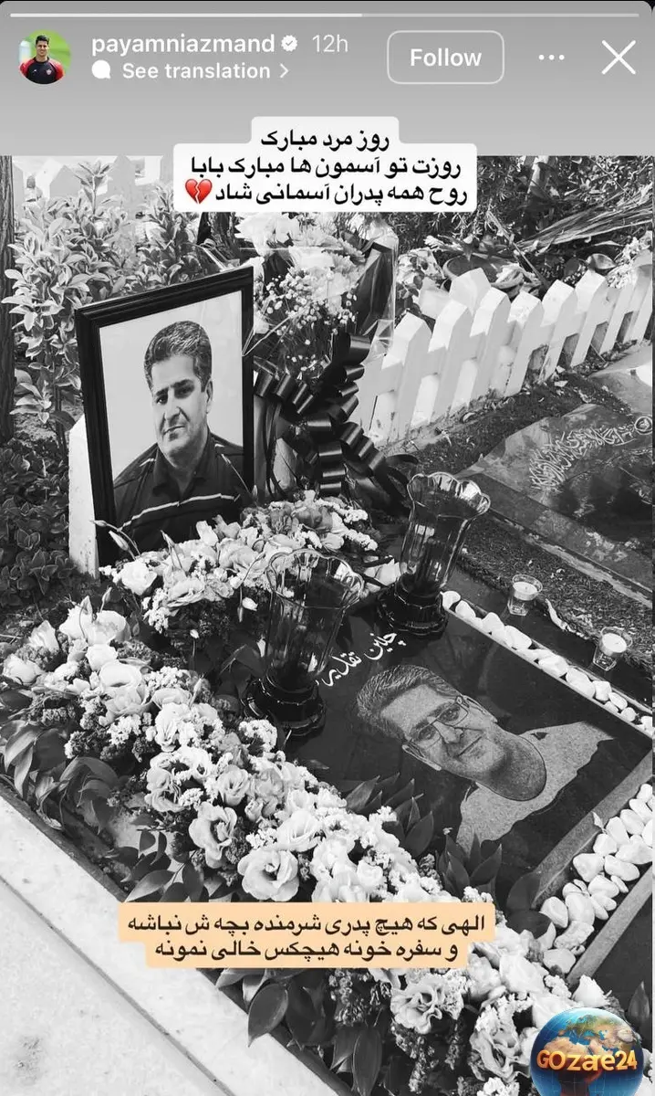 پیام نیازمند با انتشار استوری بر سر مزار پدر فقید، روز مرد را به شیوهای احساسی و متفاوت تبریک گفت.