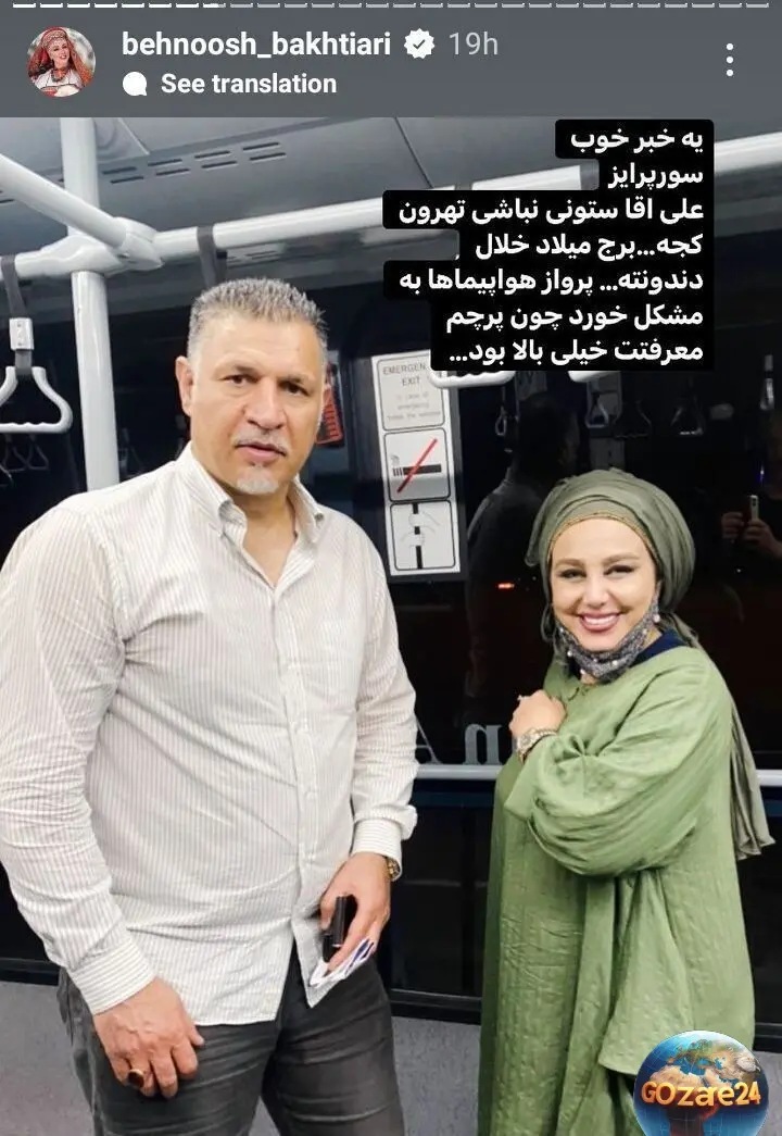 بهنوش بختیاری با انتشار تصویری که او و علی دایی در آن حضور دارند، از او تقدیر و تمجید کرد. در این استوری، او از یک خبر خوب و یک سورپرایز مرتبط با علی دایی صحبت کرده است.