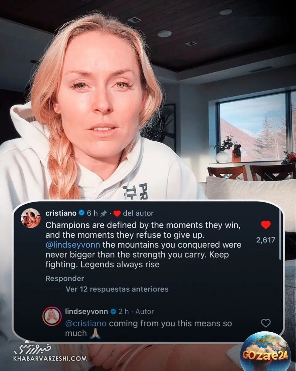 کریستیانو رونالدو با پیام الهامبخش، قدرت و اراده لیندسی ون در مقابله با مصدومیت شدید را تحسین کرد و او را قهرمان واقعی نامید.